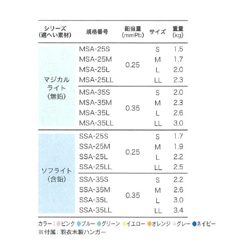 エプロンタイプをべースに、防護性能に機能を絞り込み、軽さと経済性を追求。