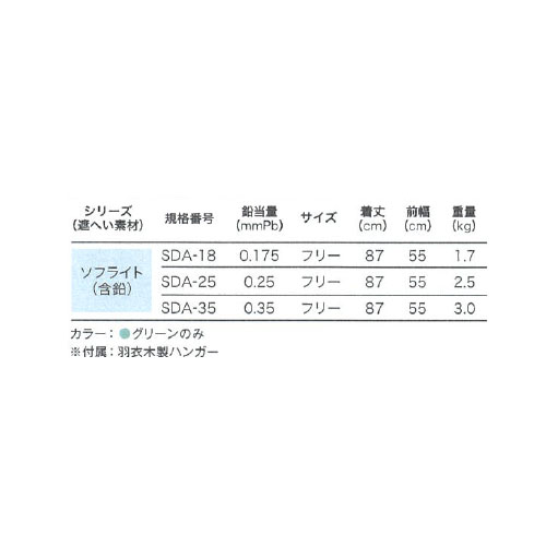 【送料無料】 【一般医療機器】 HAGOROMO 歯科用患者エプロン(成人用) ソフトライト(含鉛) 鉛当量:0.175mmPb グリーン フリー 重量:1.7kg SDA-18 マエダ