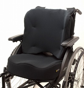 ●車いす上で腰や背中のサポートが必要な方のために、調整いらず置くだけ簡単。