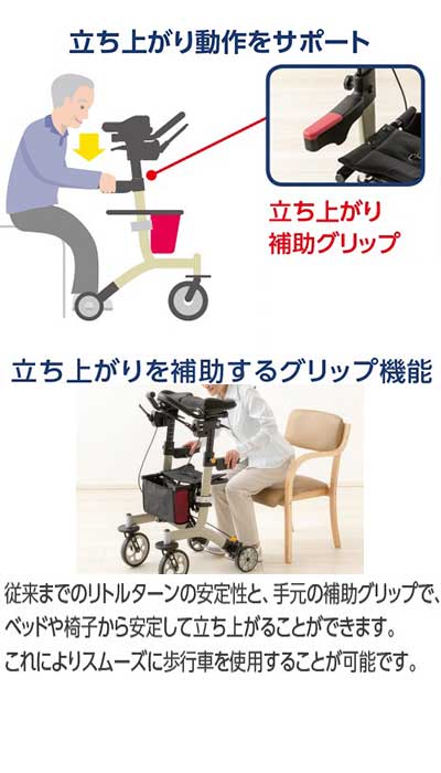 ●立ち上がり補助グリップで立ち上がり動作をサポート。