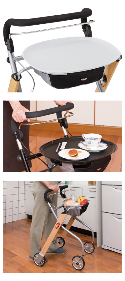 ●物を運ぶのに便利なバスケットやトレイを標準装備。