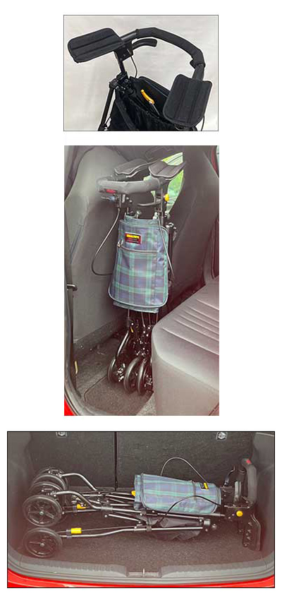 ●標準機能/折りたたみ、3WAYキャスター(360°・左右40°・固定)、手元ブレーキ、駐車ブレーキ、杖●傘立て