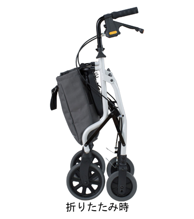 ●グリップ高さ最大93cmと高く、取り外しできるトートバッグがついたコンパクト歩行車。
