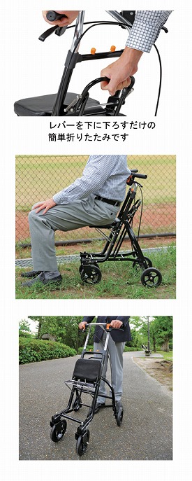 ●背の高い方にも対応できるハンドル高さ設定、男性に人気のシンプルでスマートなシルバーカー。