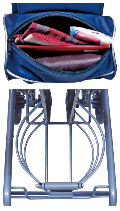 ●標準機能/折りたたみ、2WAYキャスター(左右60°、固定)、手元ブレーキ、駐車ブレーキ、座面、杖・傘立て