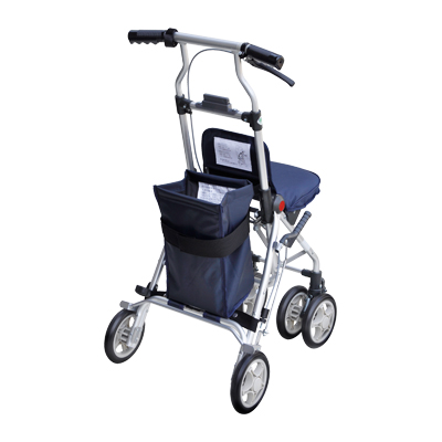 ●酸素ボンベを搭載できるシルバーカー。折りたたみ簡単、軽くて使いやすい。