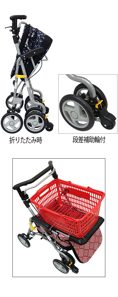●荷物の出し入れが簡単!カゴ受けを使用すれば買い物カゴを座面に載せることができます。