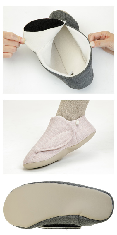 【商品説明】●「すぐに脱げてしまう」そんな悩みによりそう内反尖足対応のルームシューズ。 ●サイズ/S:20.5~21.5cm、M:22.0~23.0cm、L:23.5~24.5cm、ワイズ:3E相当 ●重さ/約70g(片足Lサイズ) ●材質/表:ポリエステル100%、内:ポリエステル100%、底材:合成皮革 ●室内用 ●男女兼用
