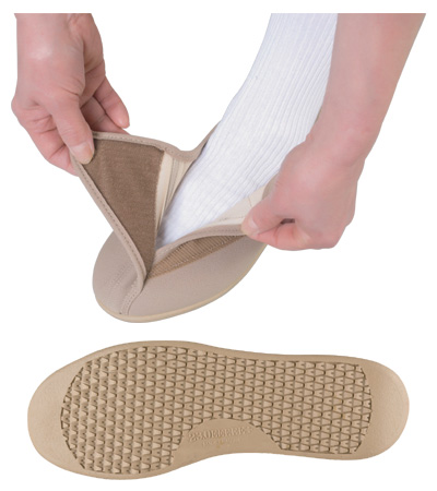 ●足にやさしい5つのポイント:体重移動をコントロールして歩行をサポート、水に浮くほど軽い、つまずきにくく安心、脱ぎ履きが簡単、安心・安全な国内生産。