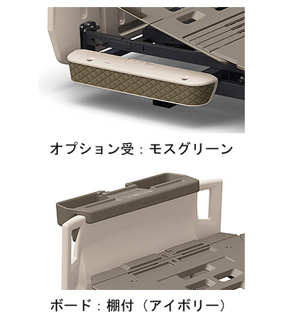 【送料無料】 楽匠プラス 棚付き 1モーター(HL) X脚タイプ オプション受:モスグリーン ボード:棚付(アイボリー) 83cm幅 KQ-A0117 パラマウントベッド TAISコード:00170-001221