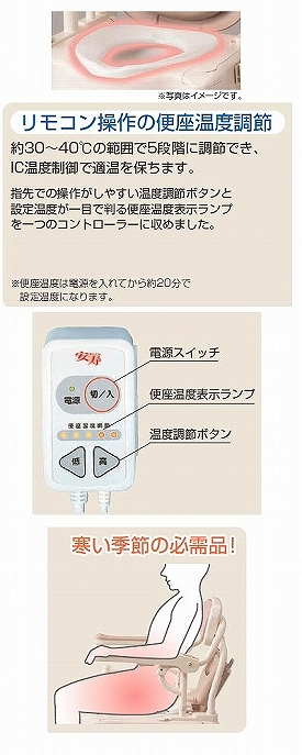 ●サイズ/幅55×奥行56×高さ76~92cm、座面:幅36×奥行40cm、穴部:幅19×奥行29cm、便座高:33~49cm、ひじ掛け高:21~27cm(3段階/3cm)、ひじ掛け内寸:40cm