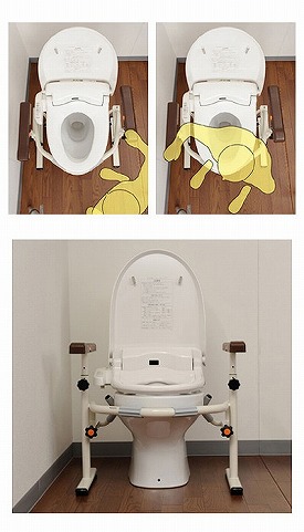 ・狭いトイレにも簡単に設置可能。着座時に取付脚とひじ掛けが邪魔にならない。