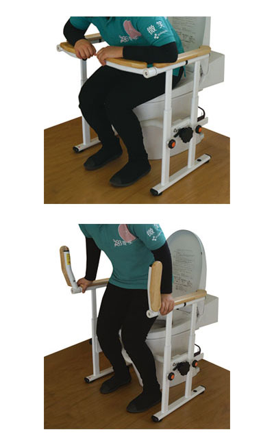 ・排泄しやすい前傾姿勢を保持できる新タイプのトイレ用手すり。