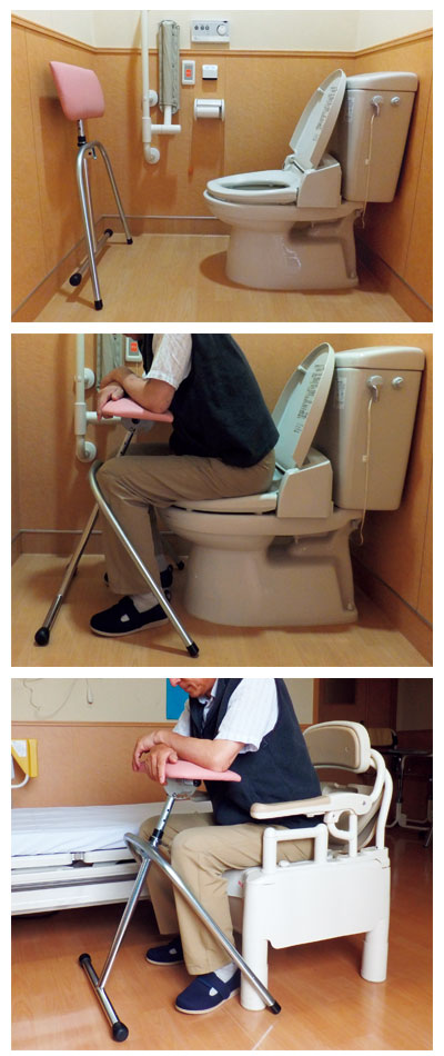 ・排泄時の排便姿勢を補助します。使用者に合わせ、マットの高さ、角度を簡単に調整できます。折りたたみ可能。