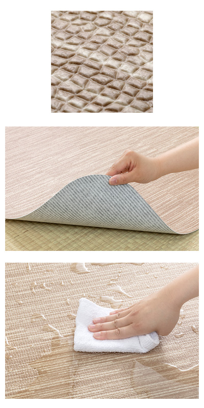 ●材質/表面:塩化ビニル樹脂、裏面:(基布)ポリエステル100%・(すべり止め)アクリル樹脂(カテキン入り)