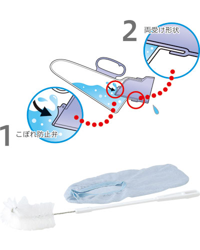・尿をとった後、股の間から抜き取る時や持ち運びのときなど、万が一尿器が傾いてもいっきに流れ出さないように2つのこぼれ防止機能をつけました。