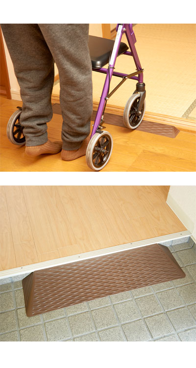 ●小さな段差によるつまづきを防止。屋内・屋外兼用のミニスロープです。
