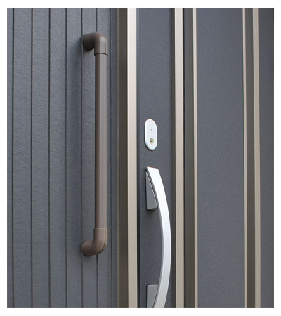 【商品説明】●現場での組立不要の定尺手すり。 ●屋外壁面取付専用の樹脂手摺です。 ※横付不可です。 ●サイズ/長さ80cm、手すり径:φ3.4cm ●材質/半硬質グラフトマー樹脂 ●生産国/日本