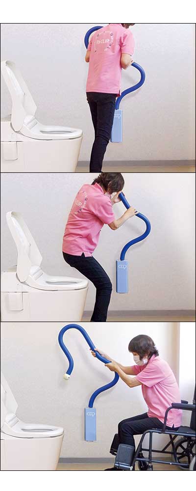 ●トイレ内の一連の動作を助けます。ポールを抱きかかえることで立位が安定し、衣類の上げ下ろしが楽にできます。