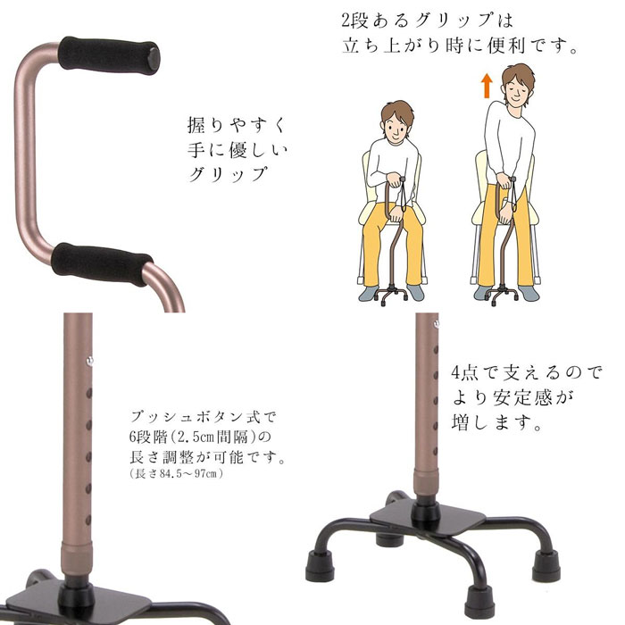 2段階4点支柱杖 OT-31PK ピンク(ショートタイプ) マキテック