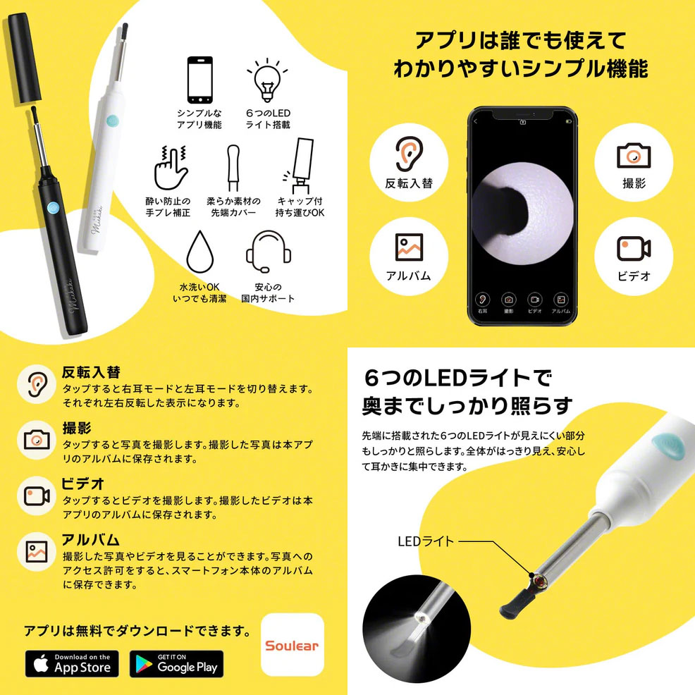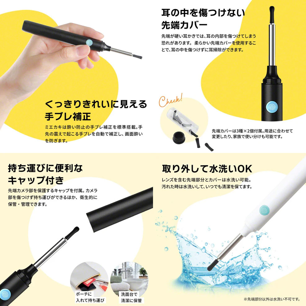 ワイヤレスカメラ付き耳かき ミエカキ 3R-BBD02BK ブラック スリーアールソリューション