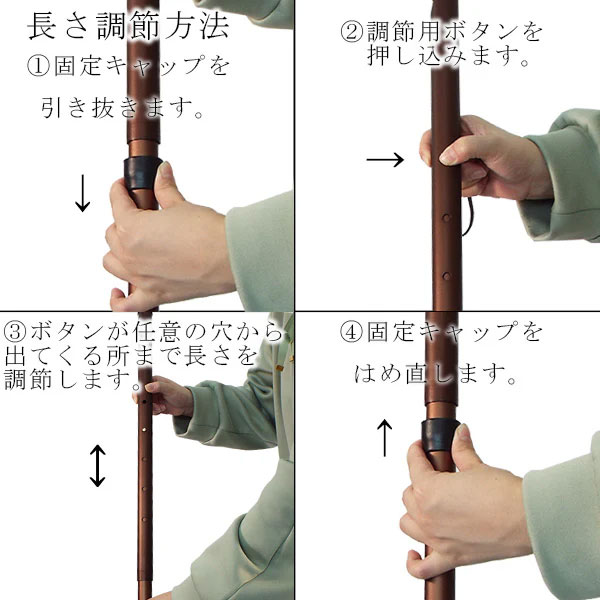●材質:支柱(アルミ)、握り部(木製)、ストラップ(ナイロン)