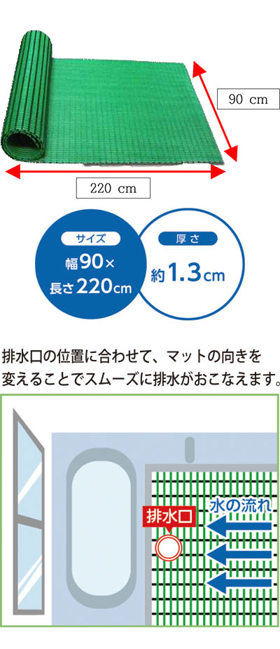 ●排水口の位置に合わせて、マットの向きを変えることで排水がスムーズに行えます。