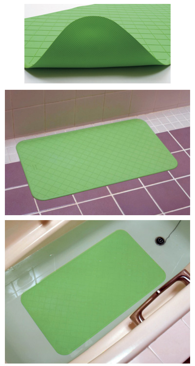 ●滑りを予防したい場所に「置くだけ」で設置面にフィットします。洗い場や浴槽のお湯に沈めてもお使いいただけます(自重で簡単に沈みます)。使用後は簡単に取り外しできますので、お手入れも簡単です。常に衛生的に使用できます。