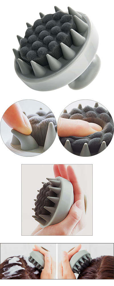 ●トゲトゲシリコンブラシ。ほどよいかたさで適度な刺激を与え、頭皮の血行を促進。