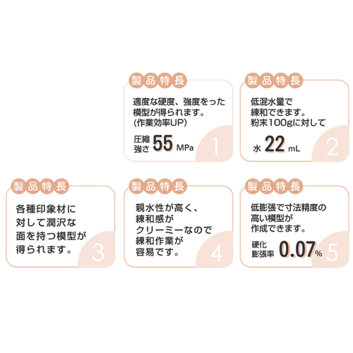 【商品説明】 超硬石こうに求められる物性・操作性を兼ね備え、コストパフォーマンスにも優れます。 ●容量:3kg(1.5kg×2袋) ●色調:ピーチ ●医療機器届出番号 24B3X00001000011 ●医療機器の分類 一般医療機器(クラスI)