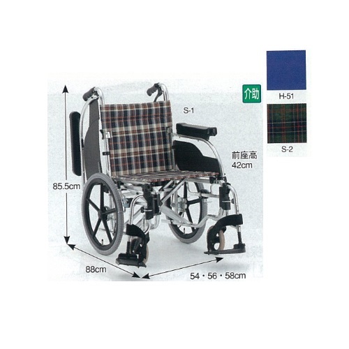 【送料無料】 多機能介助タイプ 車いす 緑チェック 座幅38cm AR-601 松永製作所製