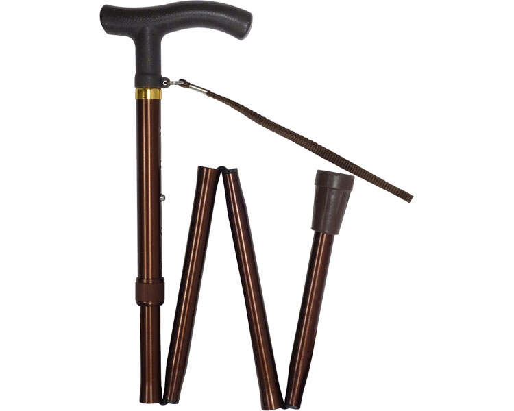 アルミ製軽量ステッキ 折りたたみ小型グリップ ブラウン MK 59-1 介援隊