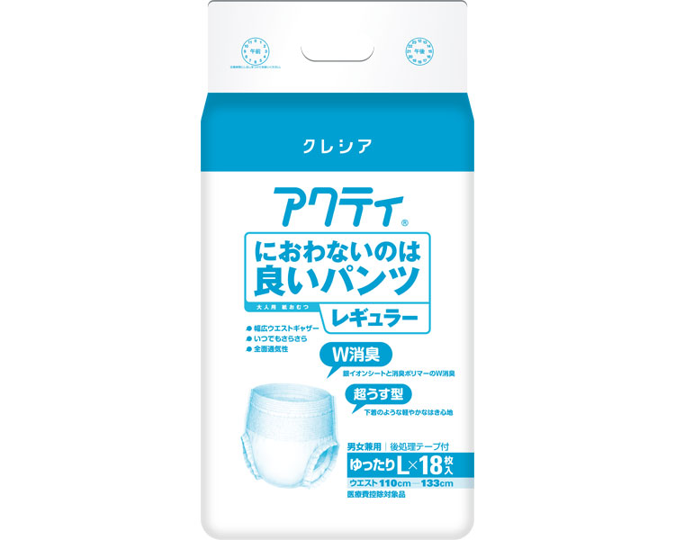 アクティ におわないのは良いパンツ レギュラー ゆったりL ケース単位 4袋セット 1袋18枚入り 84802 日本製紙クレシア