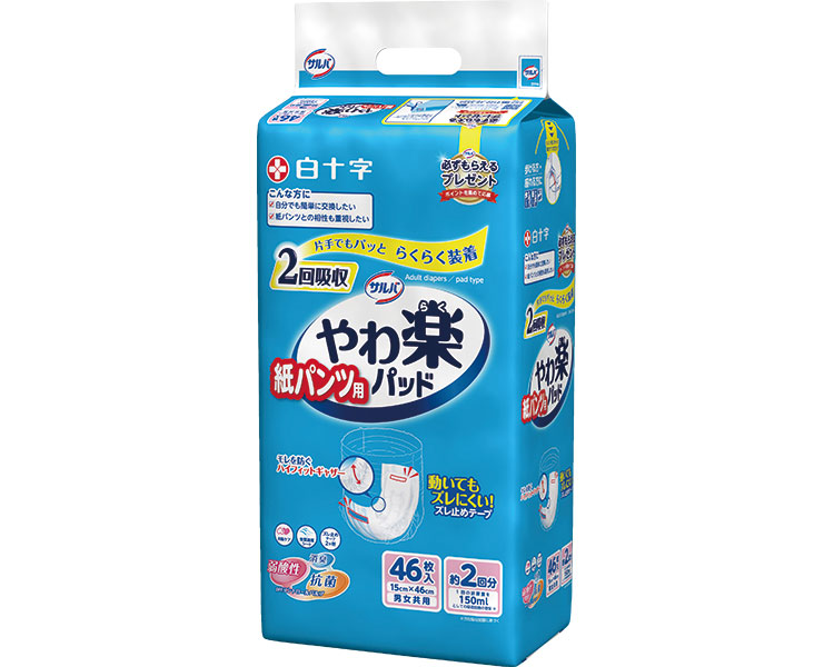 サルバ 紙パンツ用やわ楽パッド2回吸収 ケース単位 4袋セット 1袋46枚入り 33284 白十字