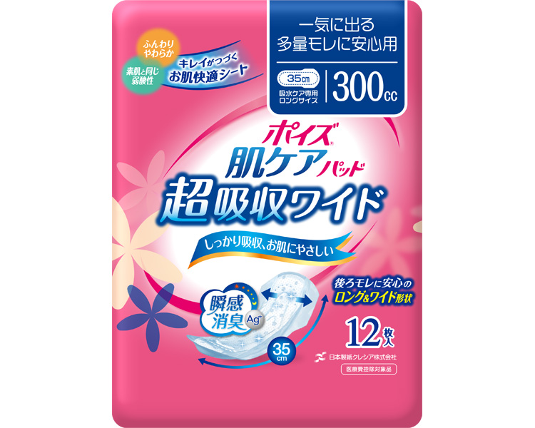 ポイズ 肌ケアパッド 一気に出る多量モレに安心用(超吸収ワイド) ケース単位 9袋セット 1袋12枚入り 88221→88280 日本製紙クレシア