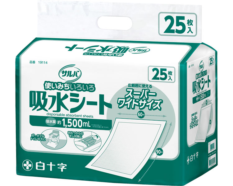 【送料無料】 サルバ 吸水シート6090 スーパーワイド ケース単位 4袋セット 1袋25枚入り 19114 白十字