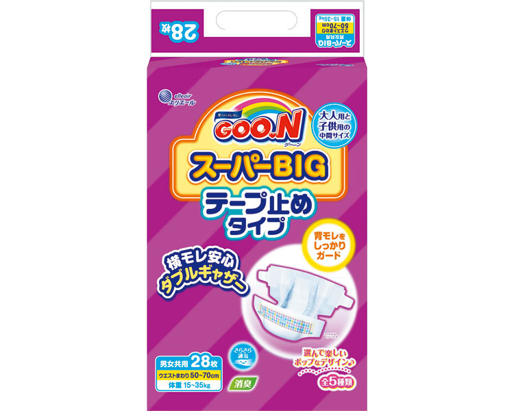 グーン スーパーBIG テープ止めタイプ ケース単位 4袋セット 1袋28枚入り 753858 大王製紙
