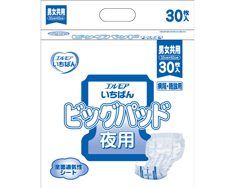【送料無料】 男女共用 業務用 エルモア いちばんビッグパッド ケース単位 4袋セット 1袋30枚入り 475961 カミ商事