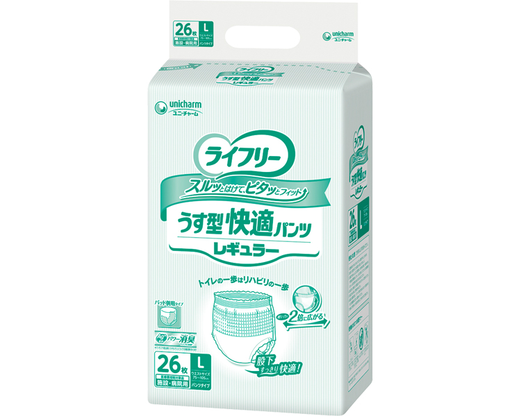 【送料無料】 ライフリー うす型快適パンツレギュラー L ケース単位 4袋セット 1袋26枚入り 55641 ユニ・チャーム