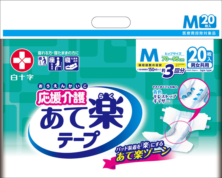 【送料無料】 応援介護 テープ止め あて楽 M ケース単位 3袋セット 1袋20枚入り 35435 白十字