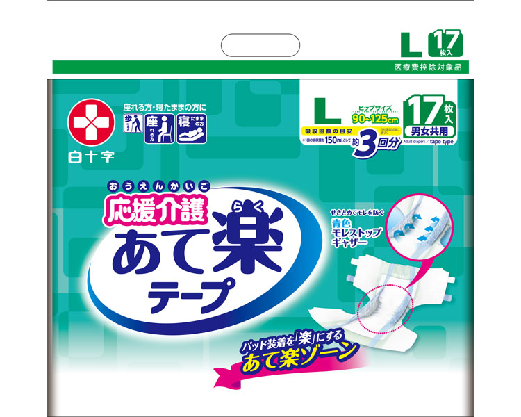 【送料無料】 応援介護 テープ止め あて楽 L ケース単位 3袋セット 1袋17枚入り 35436 白十字