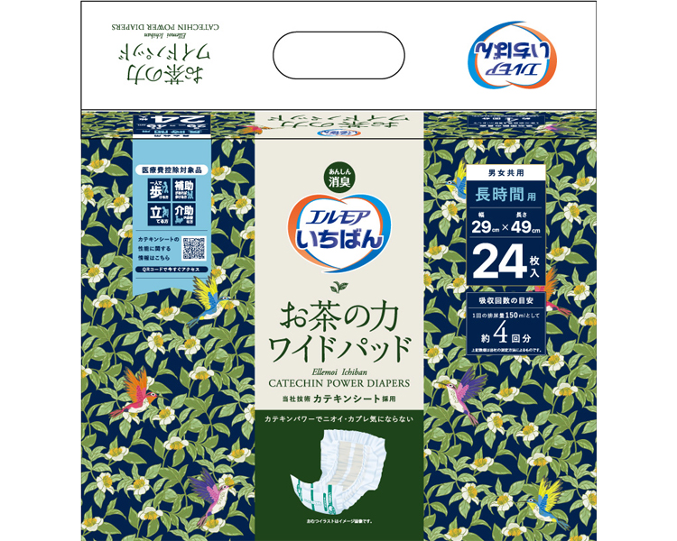 【送料無料】 エルモア いちばんお茶の力ワイドパッド ケース単位 8袋セット 1袋24枚入り 455461 カミ商事