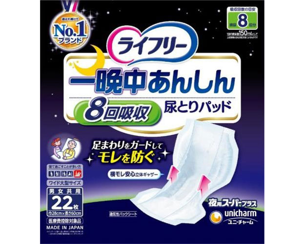 【送料無料】 ライフリー 一晩中お肌あんしん尿とりパッド 6回 ケース単位 5袋セット 1袋22枚入り 55092→52960 ユニ・チャーム