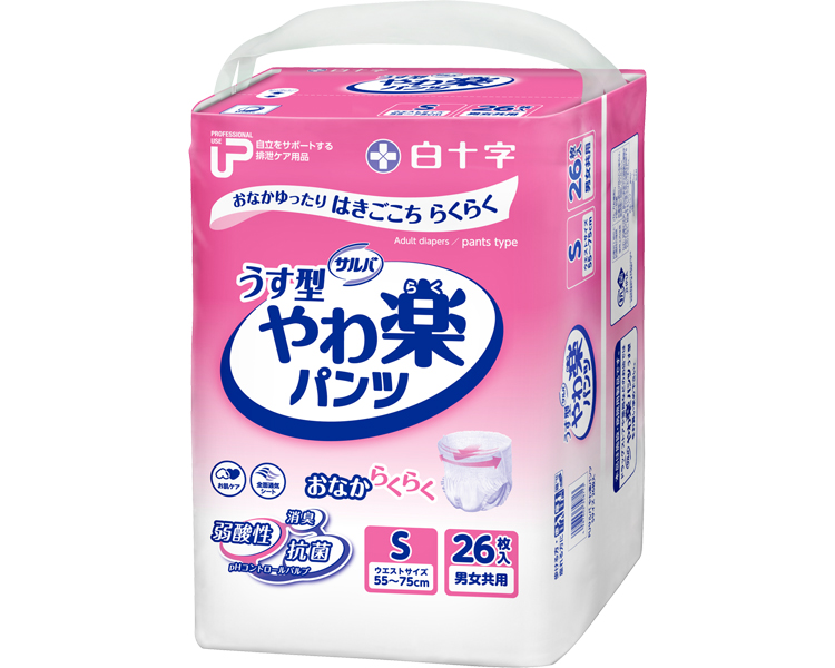 【送料無料】 P.U サルバ やわ楽パンツ S ケース単位 4袋セット 1袋26枚入り 35871 白十字