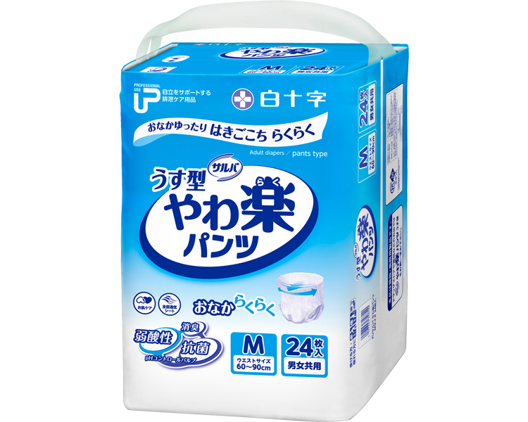 【送料無料】 P.U サルバ やわ楽パンツ M ケース単位 4袋セット 1袋24枚入り 35872 白十字