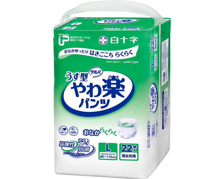【送料無料】 P.U サルバ やわ楽パンツ L ケース単位 4袋セット 1袋22枚入り 35873 白十字
