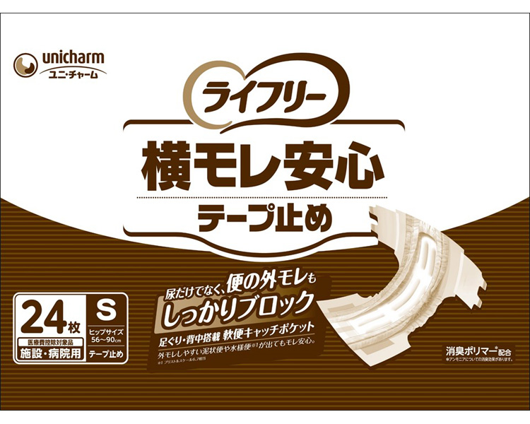 【送料無料】 ライフリー 横モレ安心テープ止め(男女共用) S ケース単位 4袋セット 1袋24枚入り 57556→57167 ユニ・チャーム
