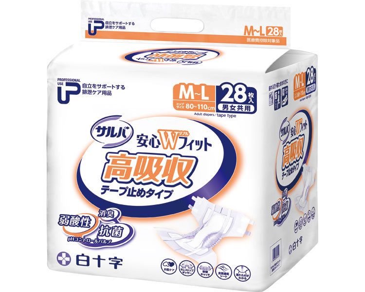 【送料無料】 P.U サルバ 安心Wフィット高吸収テープ M-L ケース単位 2袋セット 1袋28枚入り 35612 白十字