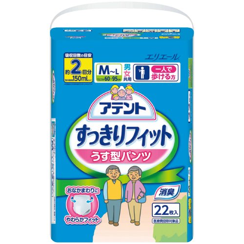 すっきりフィット薄型パンツ 男女共用 M~Lサイズ22枚 アテント