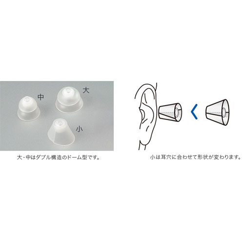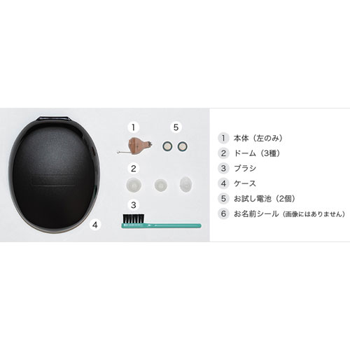 ドーム(小・中・大)各1、化粧ケース1、空気電池1、取扱説明書1、保証書1、掃除ブラシ1